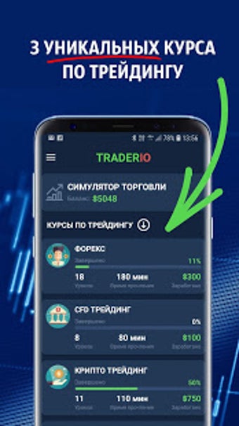 Форекс Трейдинг - это не только поиск прибыльных стратегий или прохождение дорогостоящих курсов от так называемых "гуру трейдинга". Traderio, бесплатное приложение для обучения Форекс, предлагает новичкам возможность изучить трейдинг на рынке Форекс с помощью трейдингового симулятора. С помощью этого приложения у вас будет доступ к бесплатному обучению Форекс, которое может заменить любые онлайн-курсы для начинающих.